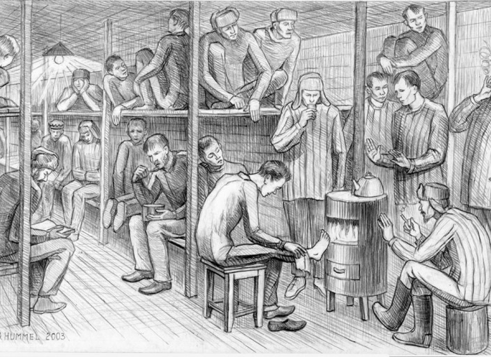 Как всегда, в 6 часов утра по бараку раздавался писклявый голос дневального: «Подъем!» В бараке было по-прежнему холодно и сыро. В спертом воздухе стоял отвратительный запах грязных, потных тел мужчин. Верхние и нижние ярусы нар были плотно забиты людьми. Страшно не хотелось вылезать из-под бушлата, который за ночь все же помогал согреться.